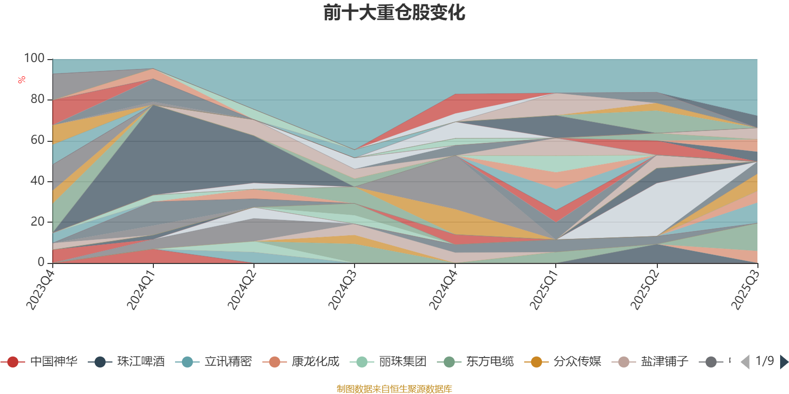 该基金持股集中度较高。截至2025年三季度末,基金十大重仓股分别是东方电缆、华虹公司、ST华通、恺英网络、晶合集成、康龙化成、宁德时代、紫金矿业、浩洋股份、东航物流。