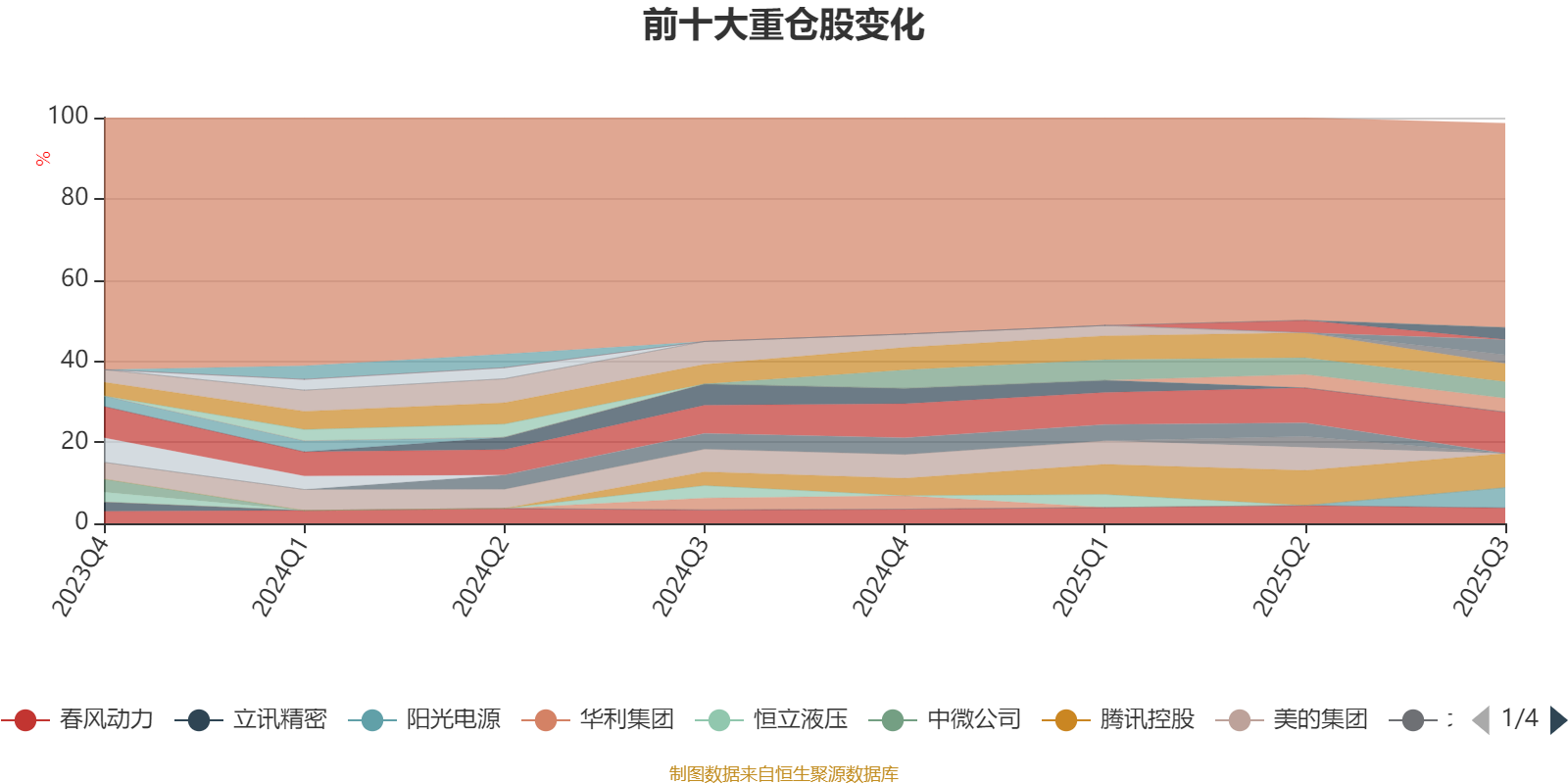 截至2025年三季度末,基金十大重仓股分别是宁德时代、腾讯控股、阳光电源、久立特材、徐工机械、春风动力、中芯国际、生益科技、工业富联、金风科技。