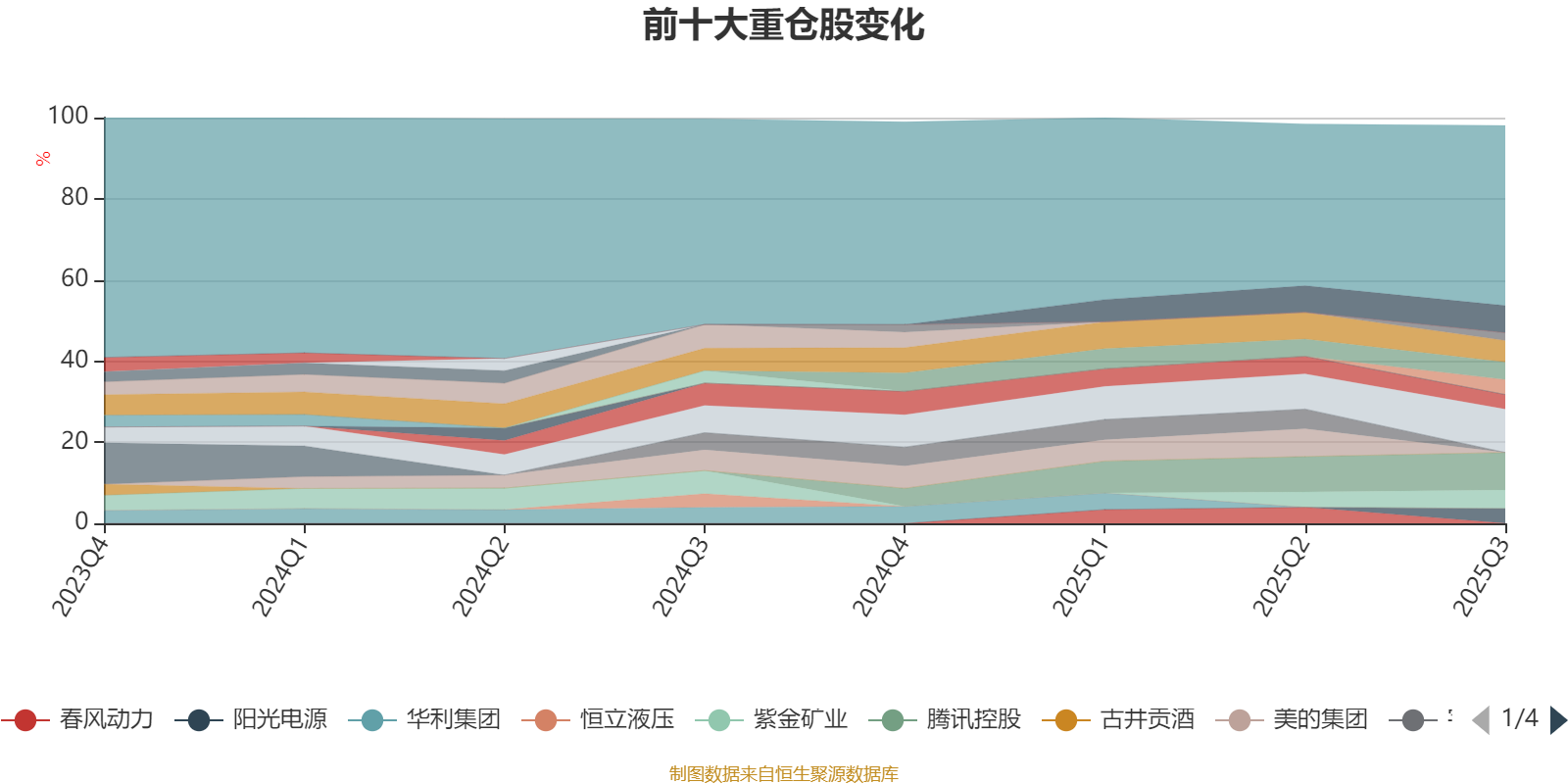 截至2025年三季度末,基金十大重仓股分别是宁德时代、腾讯控股、中国宏桥、久立特材、紫金矿业、徐工机械、亚钾国际、阳光电源、福耀玻璃、金风科技。