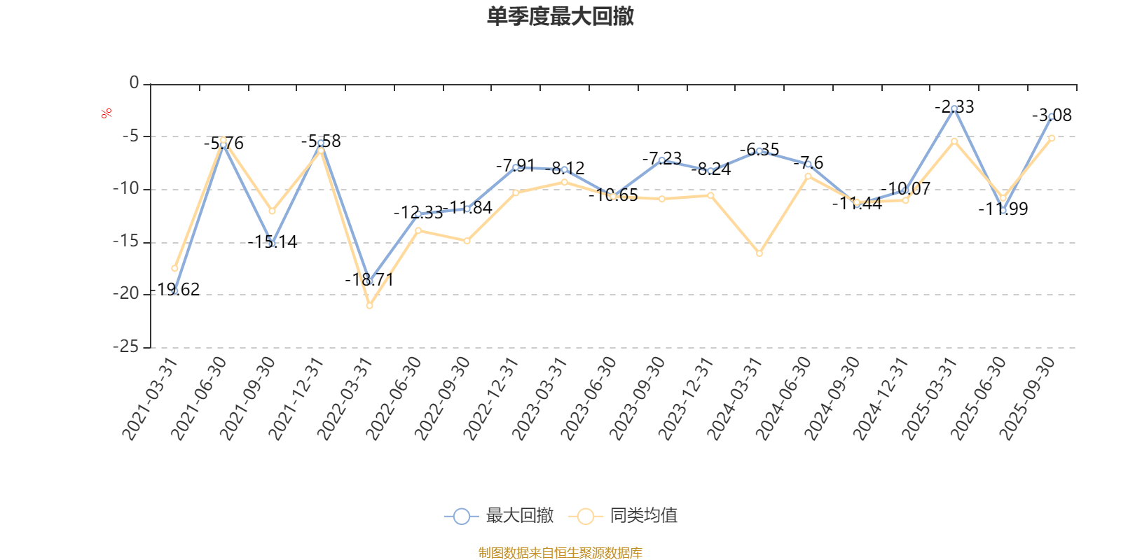 截至10月29日,基金近三年最大回撤为25.09%,同类可比基金排名20/176。单季度最大回撤出现在2021年一季度,为19.62%。