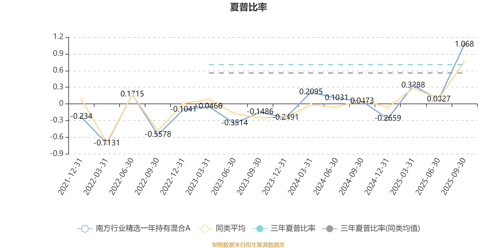 截至9月30日,基金近三年夏普比率为0.7064,位于同类可比基金57/177。