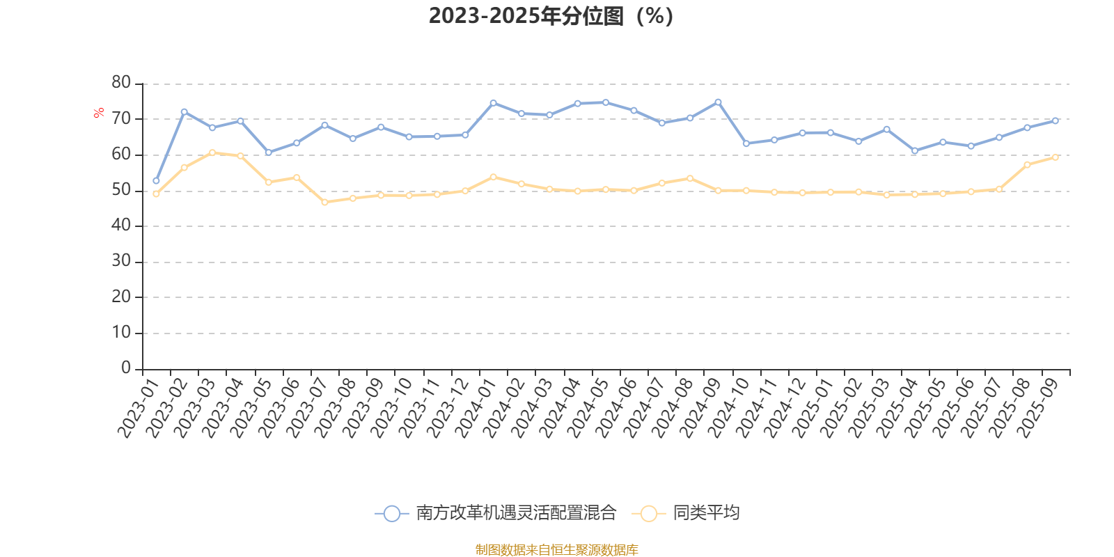 通过所选区间该基金净值增长率分位图,可以观察该基金与同类基金业绩比较情况。图为坐标原点到区间内某时点的净值增长率在同类基金中的分位数。