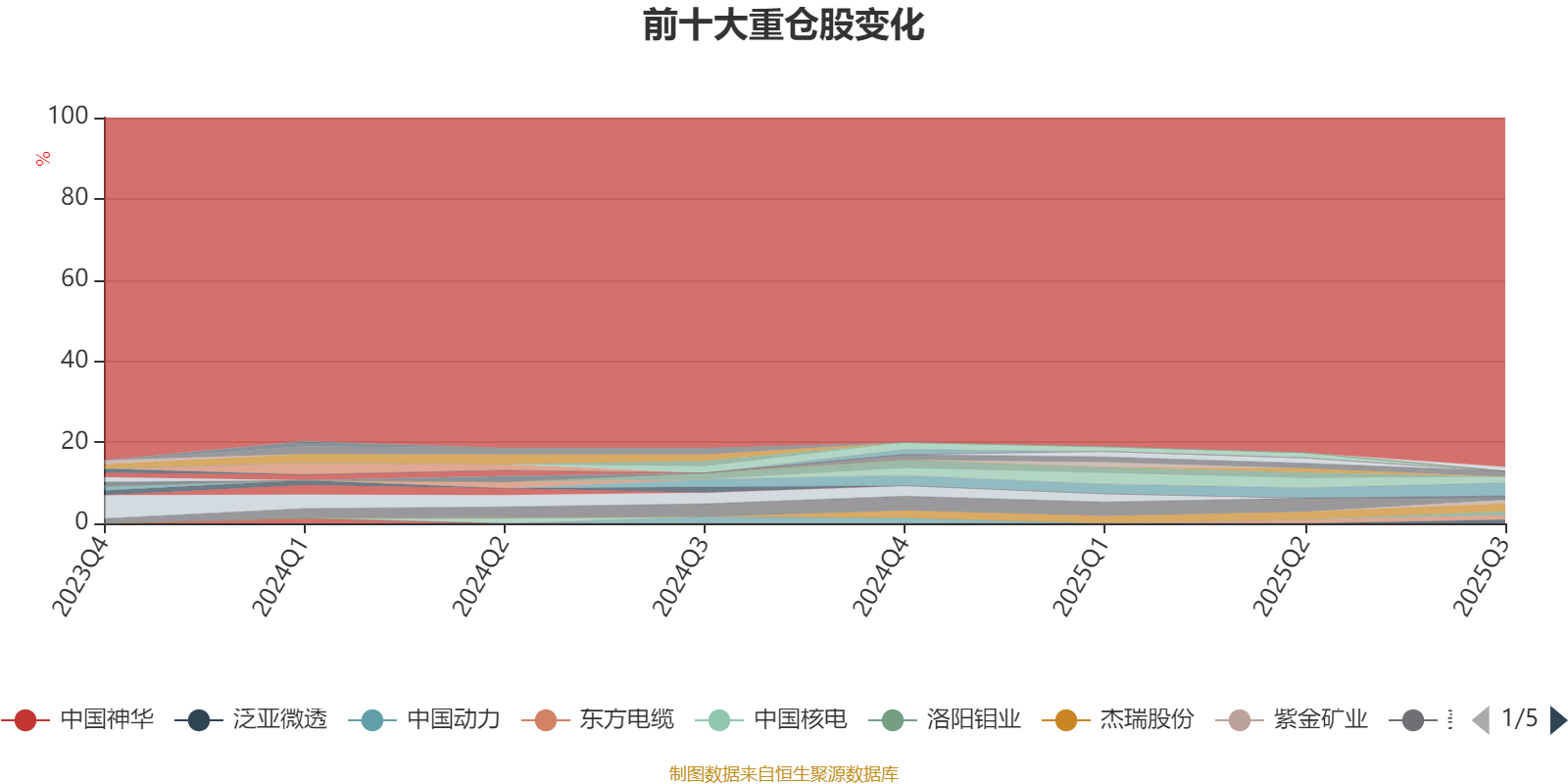 截至2025年三季度末,基金十大重仓股分别是宁德时代、杰瑞股份、九号公司、徐工机械、东方电缆、兆易创新、洛阳钼业、ST华通、泛亚微透、紫金矿业。