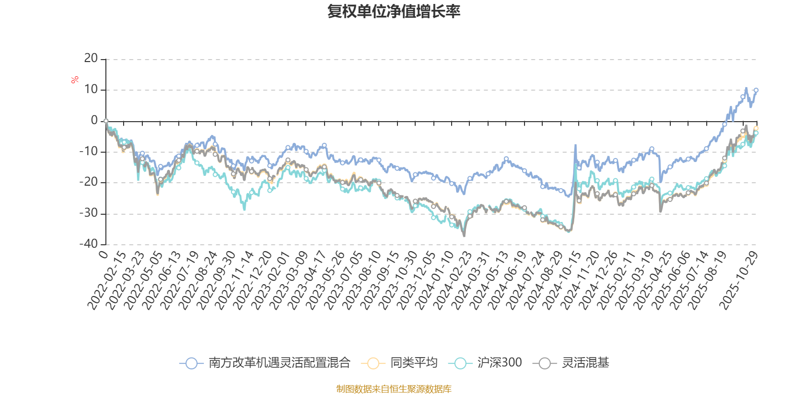 截至10月29日,南方改革机遇灵活配置混合近三个月复权单位净值增长率为15.90%,位于同类可比基金502/1287;近半年复权单位净值增长率为29.49%,位于同类可比基金521/1287;近一年复权单位净值增长率为27.46%,位于同类可比基金554/1287;近三年复权单位净值增长率为30.93%,位于同类可比基金384/1286。