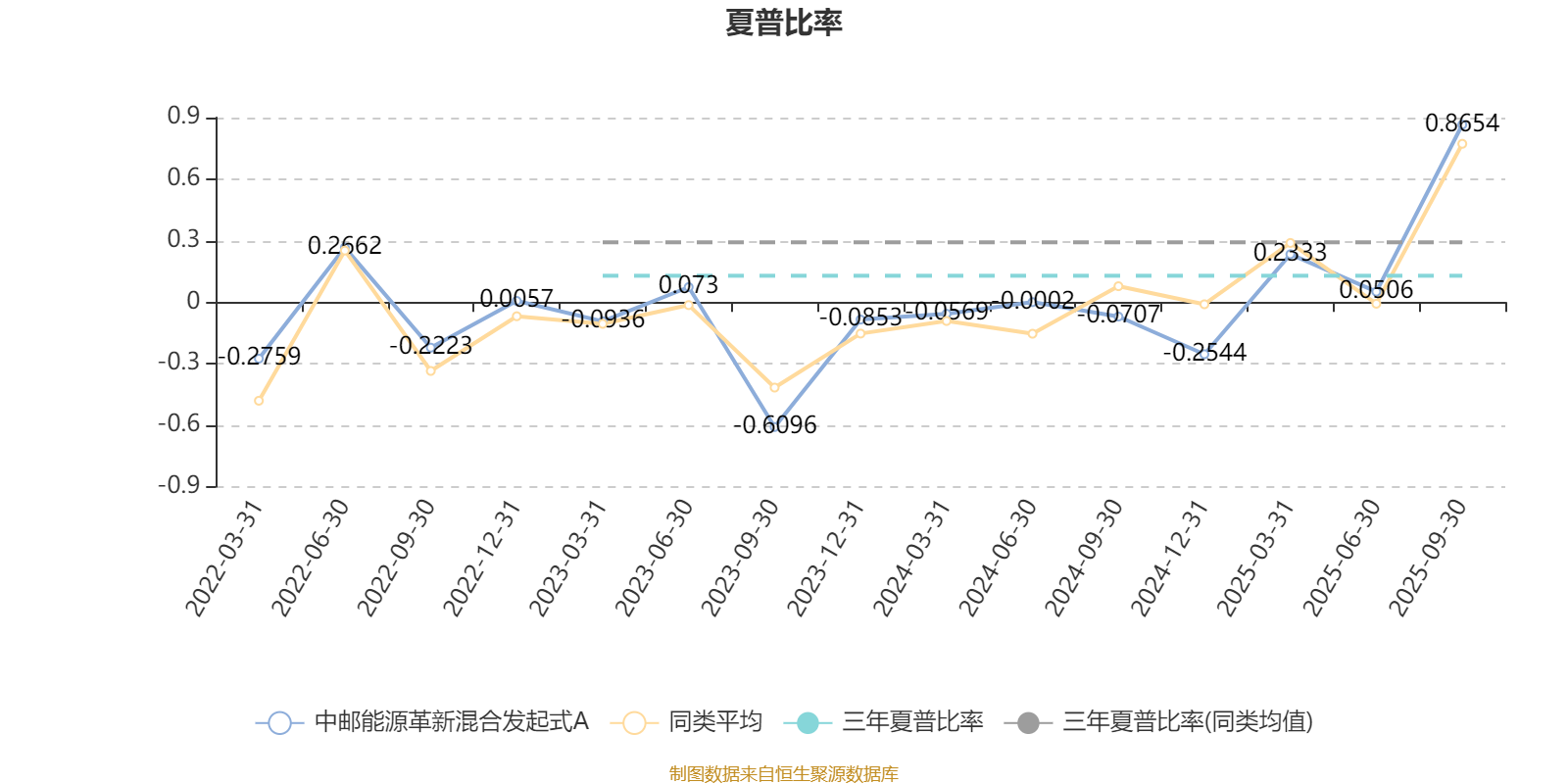 截至9月30日,基金近三年夏普比率为0.1284,位于同类可比基金42/60。