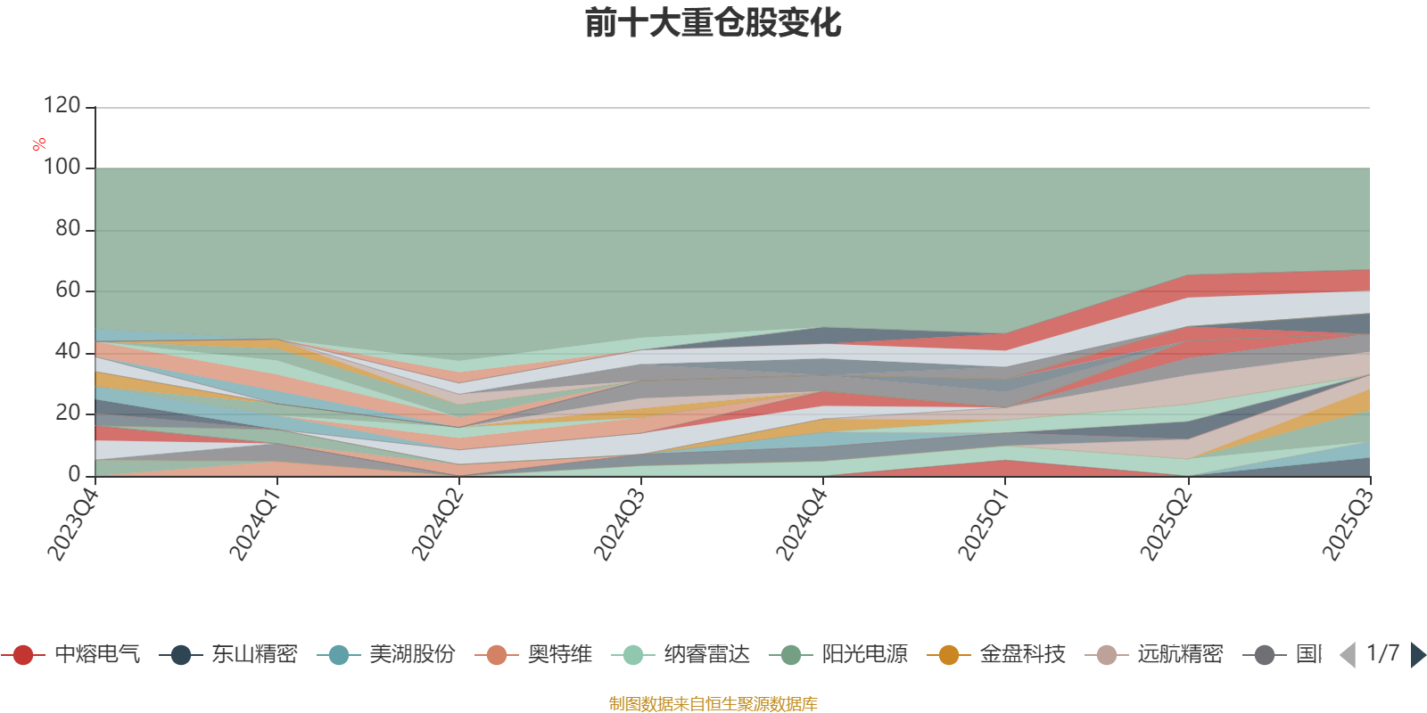截至2025年三季度末,基金十大重仓股分别是阳光电源、华测导航、大金重工、博迁新材、金盘科技、亿纬锂能、东山精密、麦加芯彩、美湖股份、远航精密。