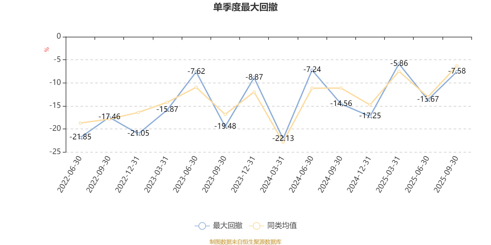 截至10月29日,基金近三年最大回撤为45.55%,同类可比基金排名25/61。单季度最大回撤出现在2024年一季度,为22.13%。