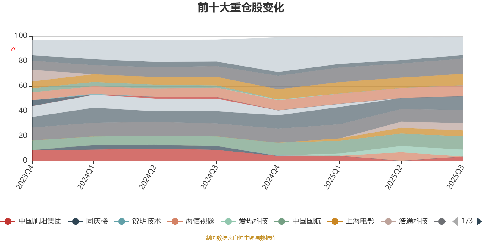 该基金持股集中度较高,且持股标的较为稳定,近2年前十大重仓股集中度长期超过60%。截至2025年三季度末,基金重仓股分别是中国东方航空股份、同程旅行、中国国航、春秋航空、吉祥航空、中国南方航空股份、浩通科技、爱玛科技、上海电影、中国旭阳集团、南方航空。