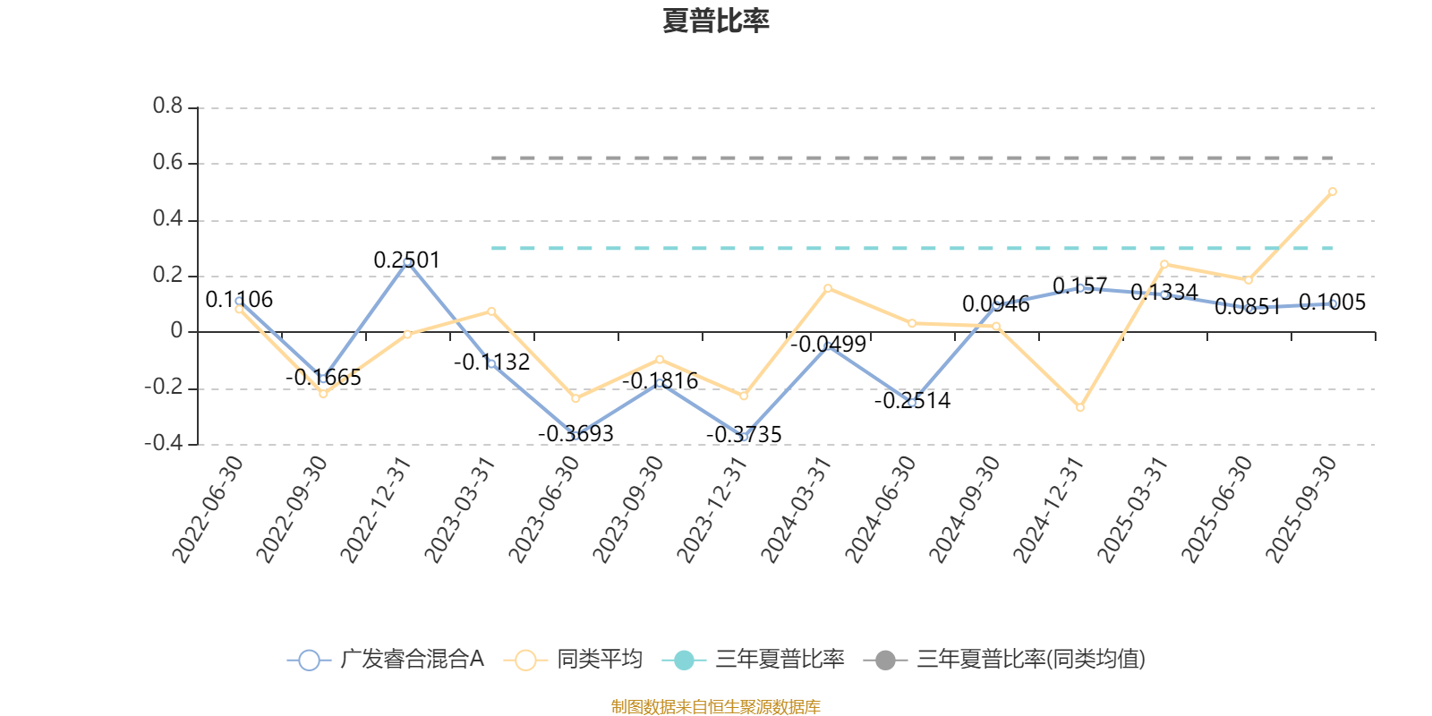 截至9月30日,基金近三年夏普比率为0.2987,位于同类可比基金25/29。