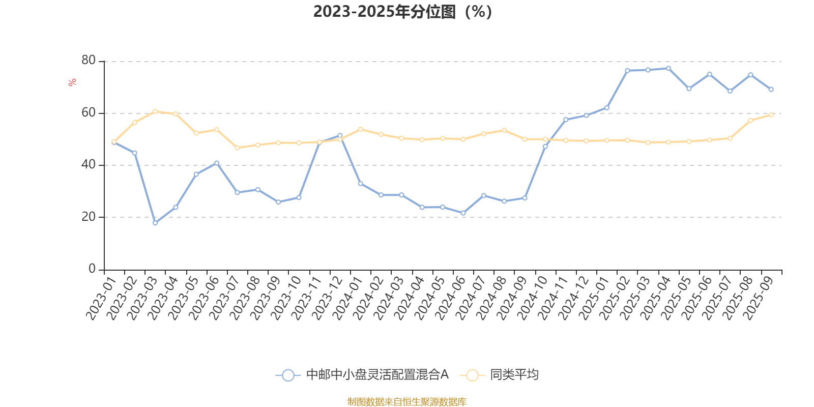 该基金属于灵活配置型基金。截至10月29日,单位净值为2.777元。基金经理是曹思,目前管理的3只基金近一年均为正收益。其中,截至10月29日,中邮专精特新一年持有期混合A近一年复权单位净值增长率最高,达40.49%;中邮中小盘灵活配置混合A最低,为34.81%。