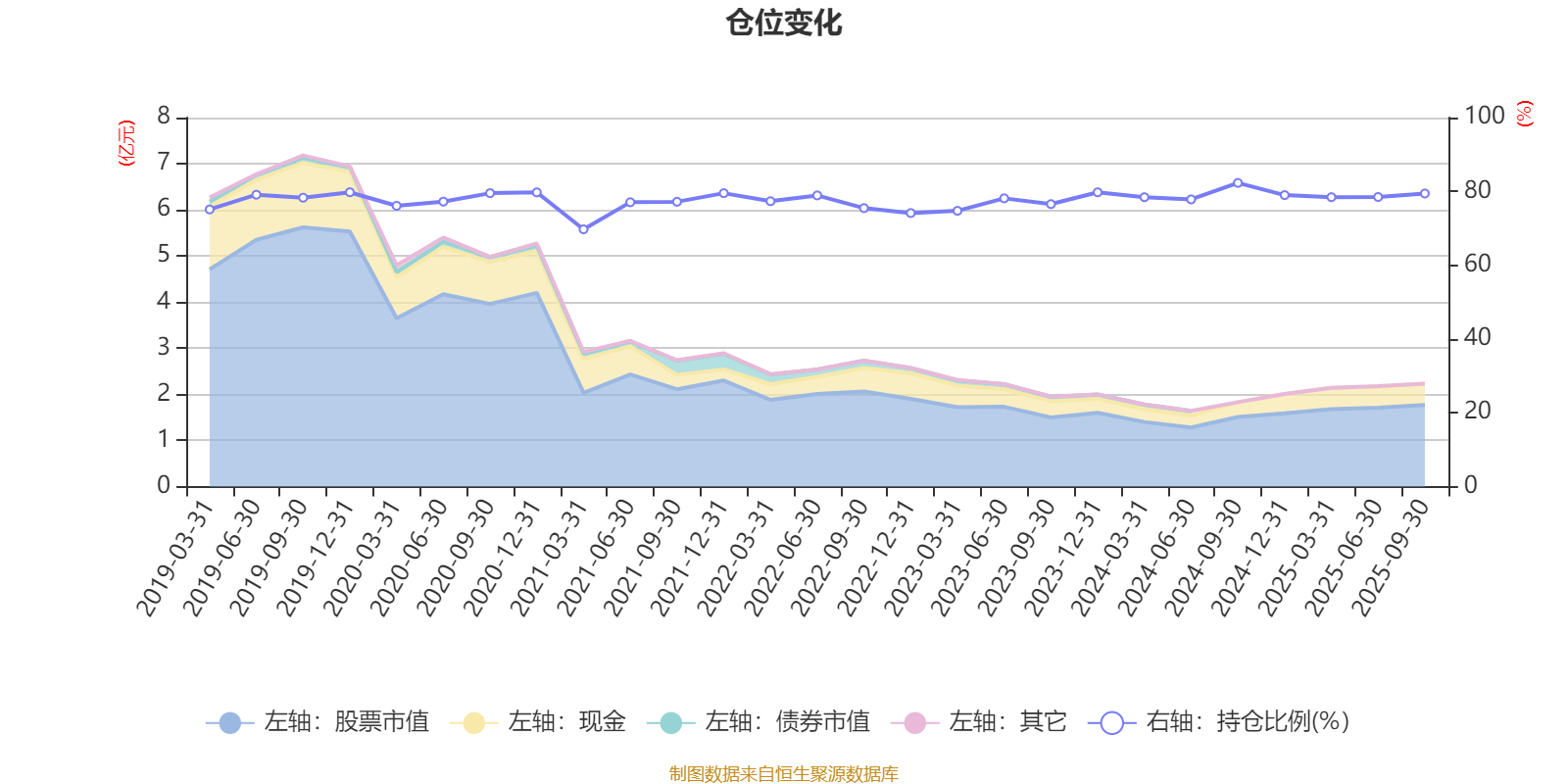 据定期报告数据统计,近三年平均股票仓位为78.1%,同类平均为72.35%。2024年三季度末基金达到82.3%的最高仓位,2021年一季度末最低,为69.72%。