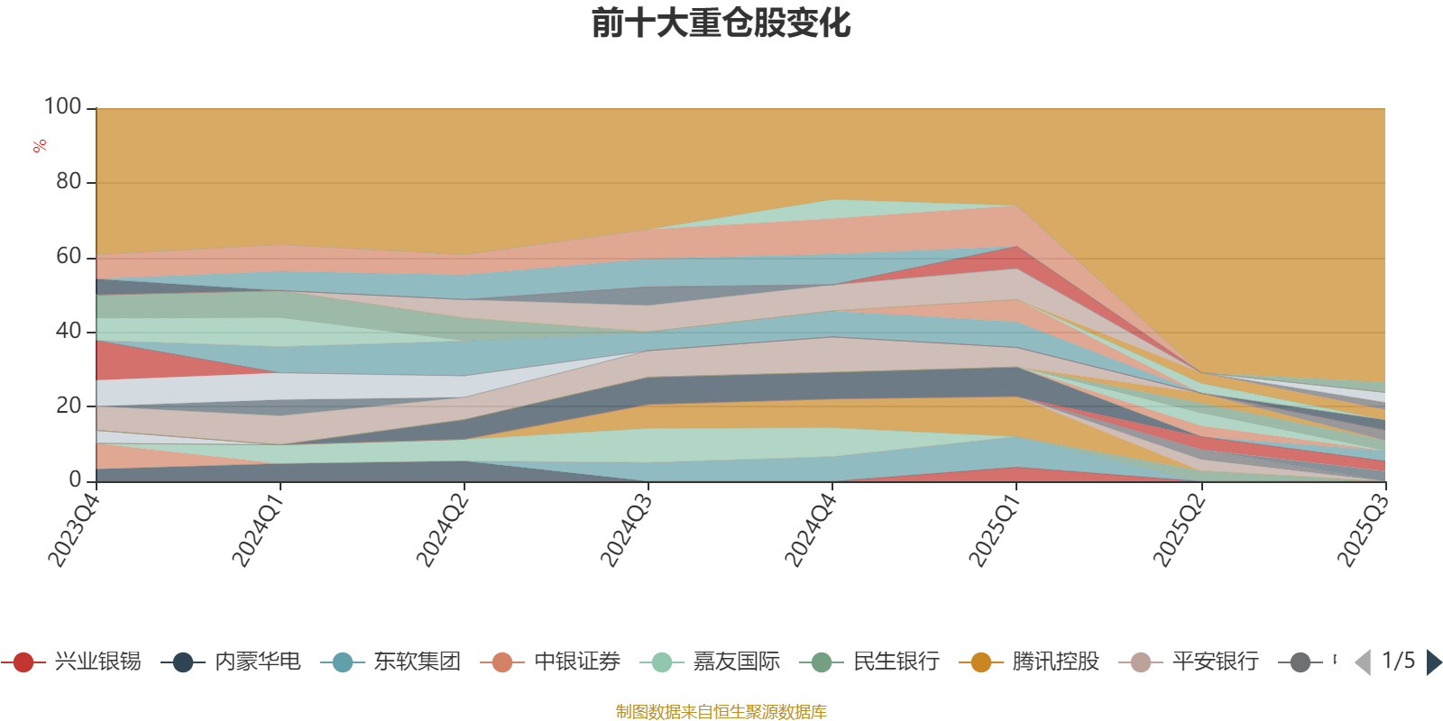 截至2025年三季度末,基金十大重仓股分别是农业银行、招商银行、杭州银行、兴业银行、宁波银行、成都银行、江苏银行、中信银行、南京银行、东鹏饮料。