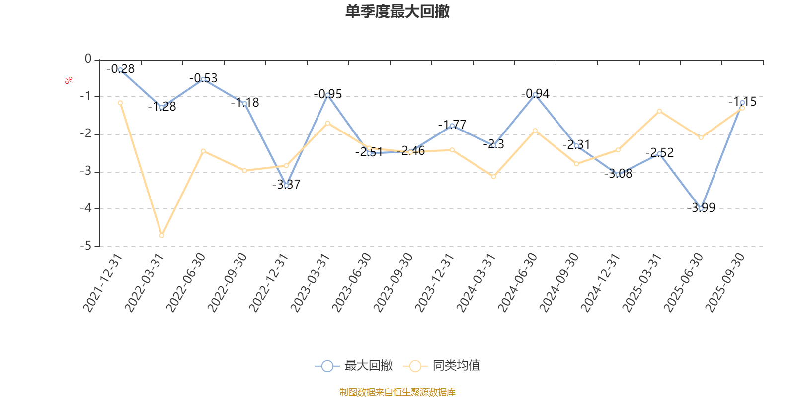 截至10月29日,基金近三年最大回撤为6.02%,同类可比基金排名252/534。单季度最大回撤出现在2025年二季度,为3.99%。