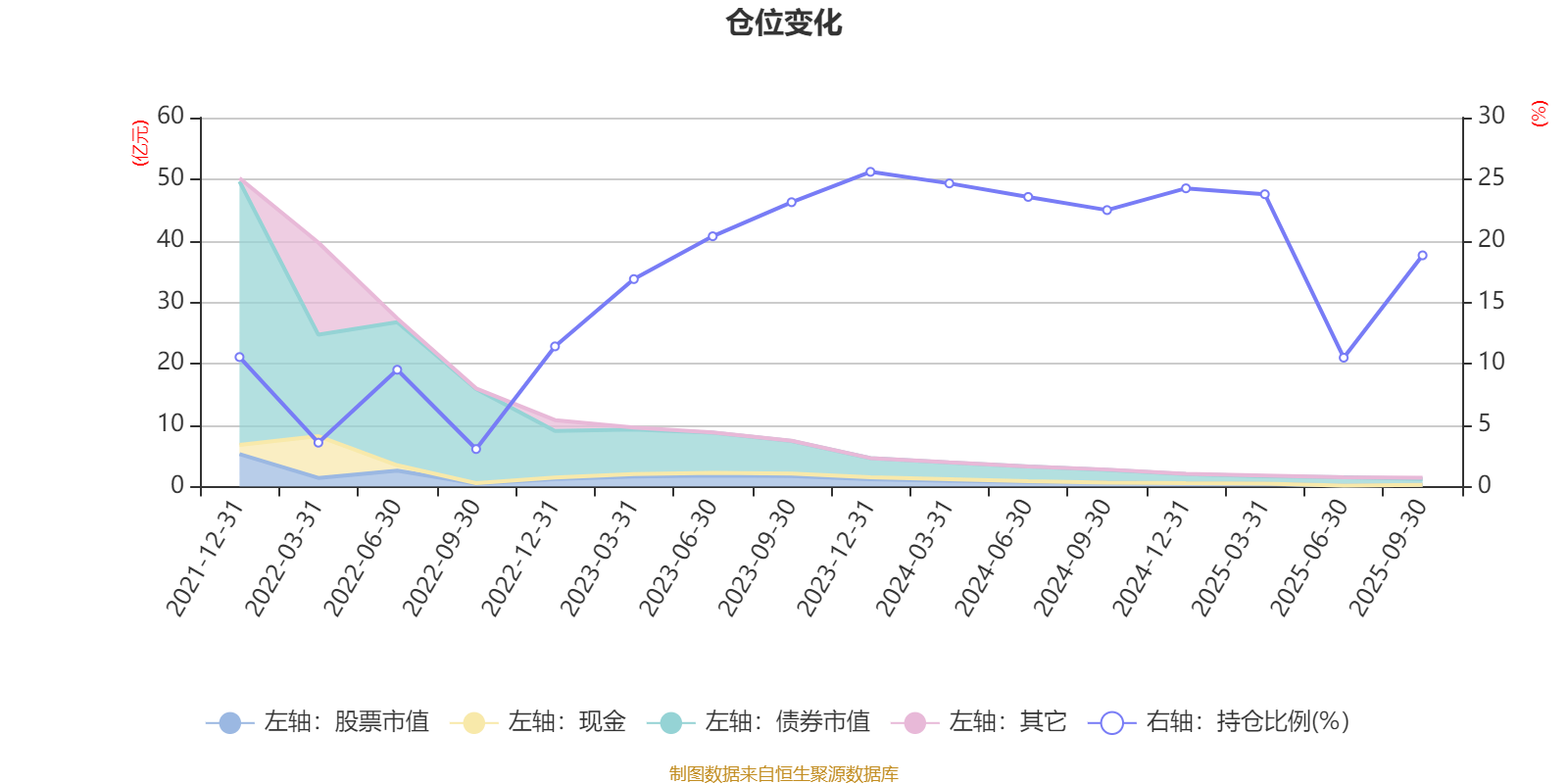 据定期报告数据统计,近三年平均股票仓位为20.44%,同类平均为19.14%。2023年末基金达到25.59%的最高仓位,2022年三季度末最低,为3.05%。