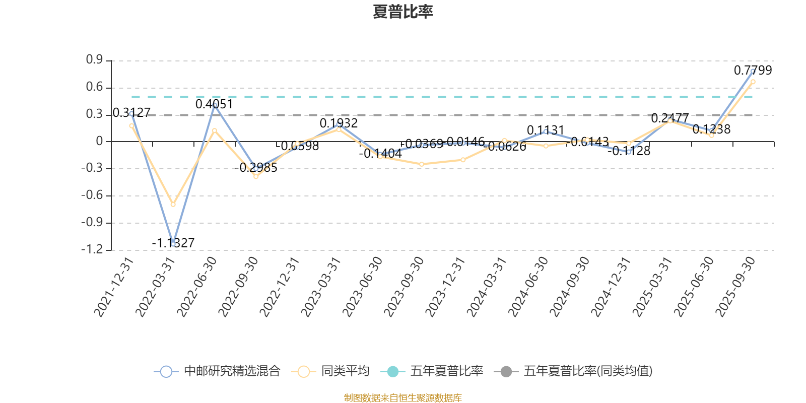 截至9月30日,基金近三年夏普比率为0.6273,位于同类可比基金49/119。