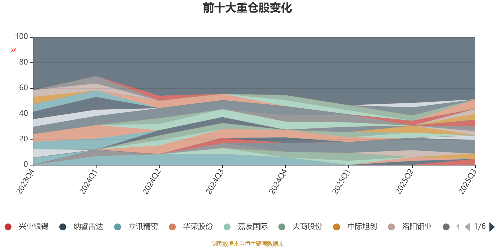 截至2025年三季度末,基金十大重仓股分别是紫金矿业、工业富联、恺英网络、铜陵有色、兴业银锡、中际旭创、万华化学、圆通速递、国恩股份、大族激光。