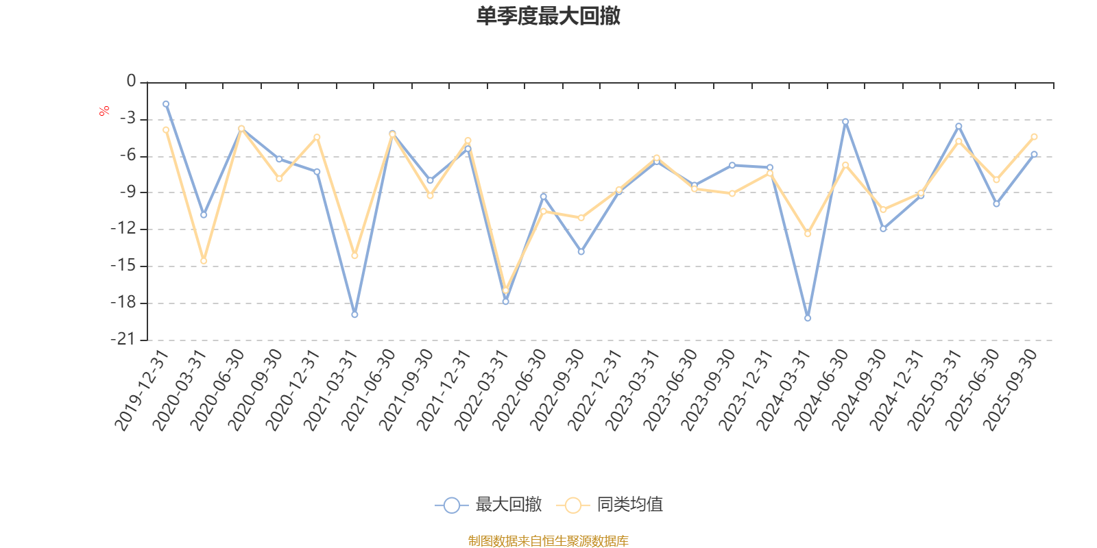 截至10月29日,基金近三年最大回撤为26.57%,同类可比基金排名60/117。单季度最大回撤出现在2024年一季度,为19.21%。