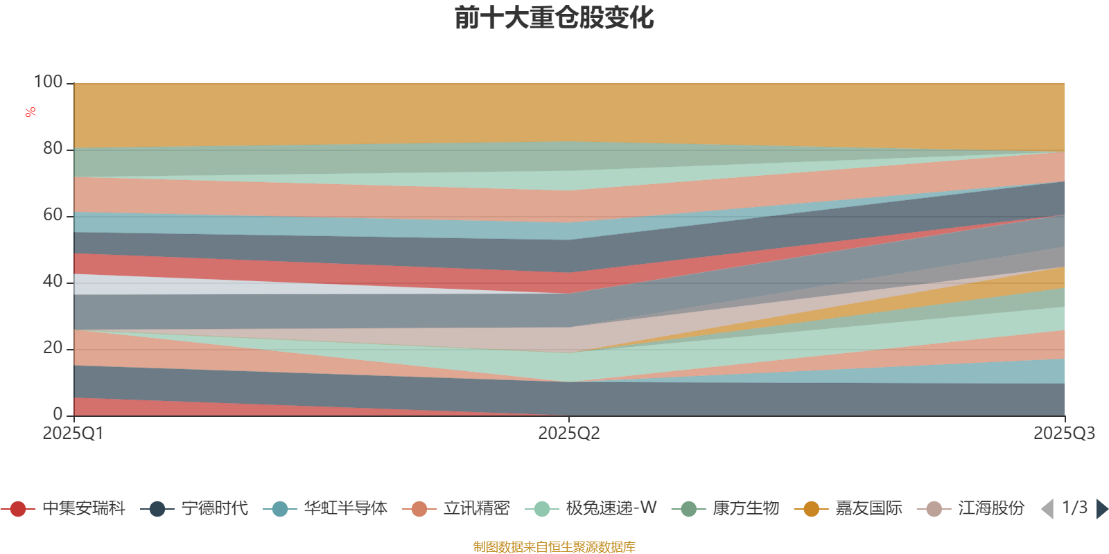 该基金持股集中度较高。截至2025年三季度末,基金十大重仓股分别是紫金矿业、江山股份、宁德时代、腾讯控股、立讯精密、华虹半导体、极兔速递-W、嘉友国际、分众传媒、康方生物。