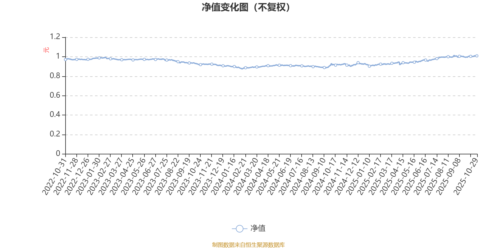该基金属于偏债混合型基金。截至10月29日,单位净值为1.008元。基金经理是刘勇和袁田。