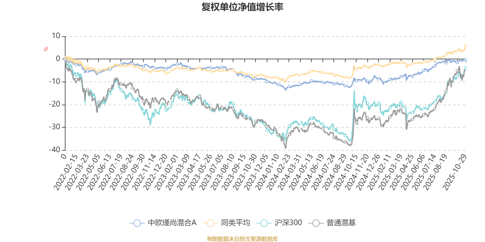 截至10月29日,中欧瑾尚混合A近三个月复权单位净值增长率为1.19%,位于同类可比基金486/629;近半年复权单位净值增长率为7.82%,位于同类可比基金175/629;近一年复权单位净值增长率为9.74%,位于同类可比基金176/623;近三年复权单位净值增长率为3.56%,位于同类可比基金493/557。