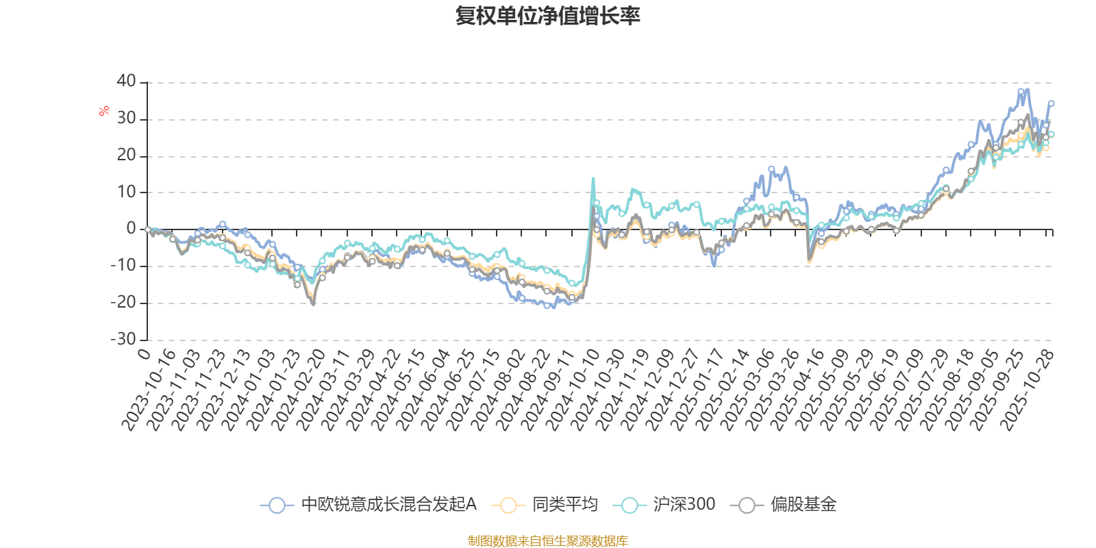 截至10月28日,中欧锐意成长混合发起A近三个月复权单位净值增长率为16.28%,位于同类可比基金264/689;近半年复权单位净值增长率为30.99%,位于同类可比基金281/688;近一年复权单位净值增长率为35.23%,位于同类可比基金191/653。
