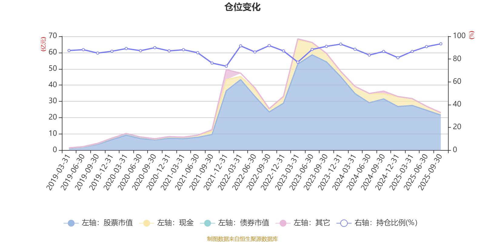 据定期报告数据统计,近三年平均股票仓位为87.36%,同类平均为87.62%。2025年三季度末基金达到93.4%的最高仓位,2021年末最低,为73.76%。