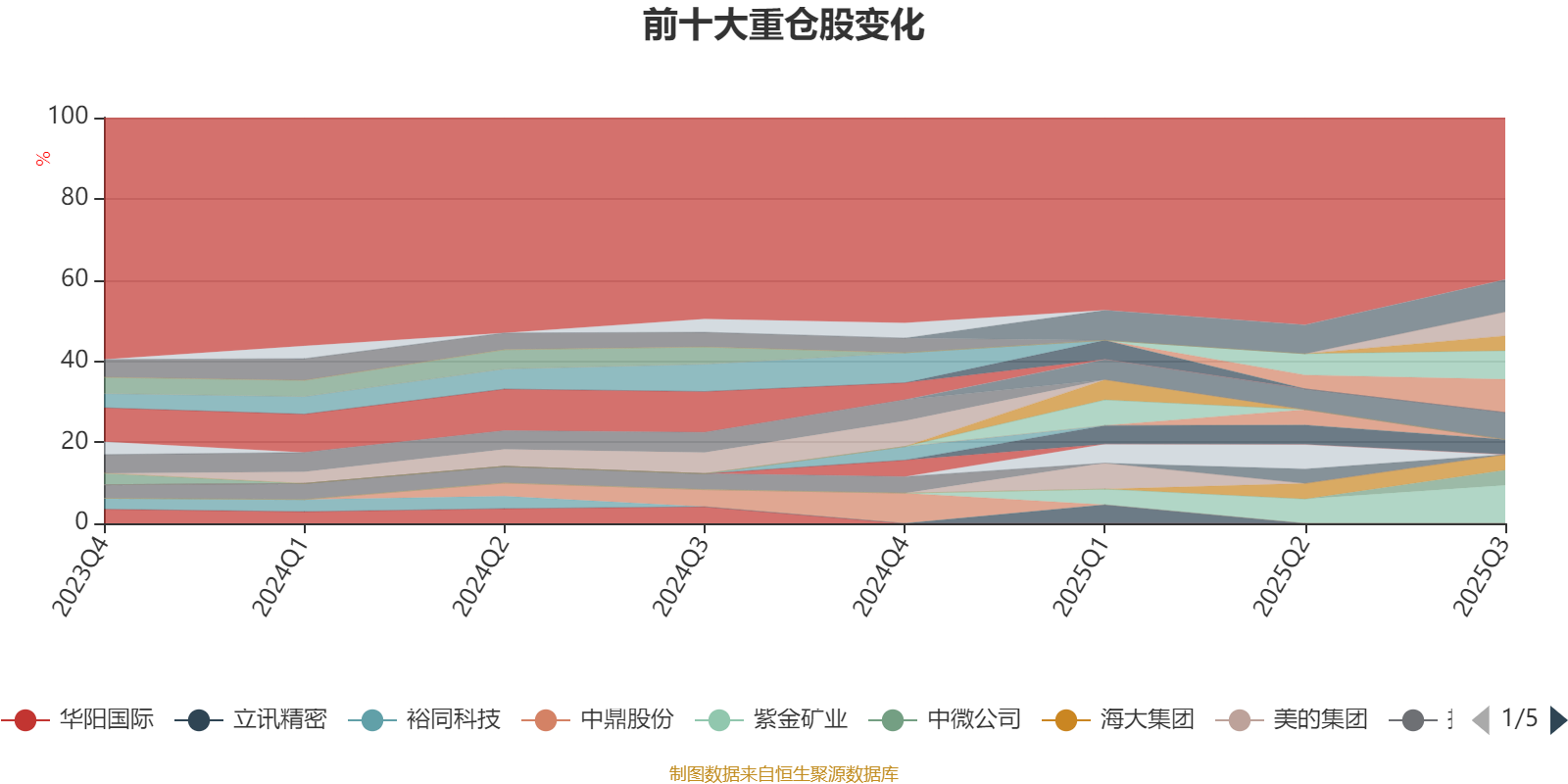 截至2025年三季度末,基金十大重仓股分别是紫金矿业、中国平安、云铝股份、三一重工、徐工机械、中国太保、海大集团、中微公司、华鲁恒升、潍柴动力。