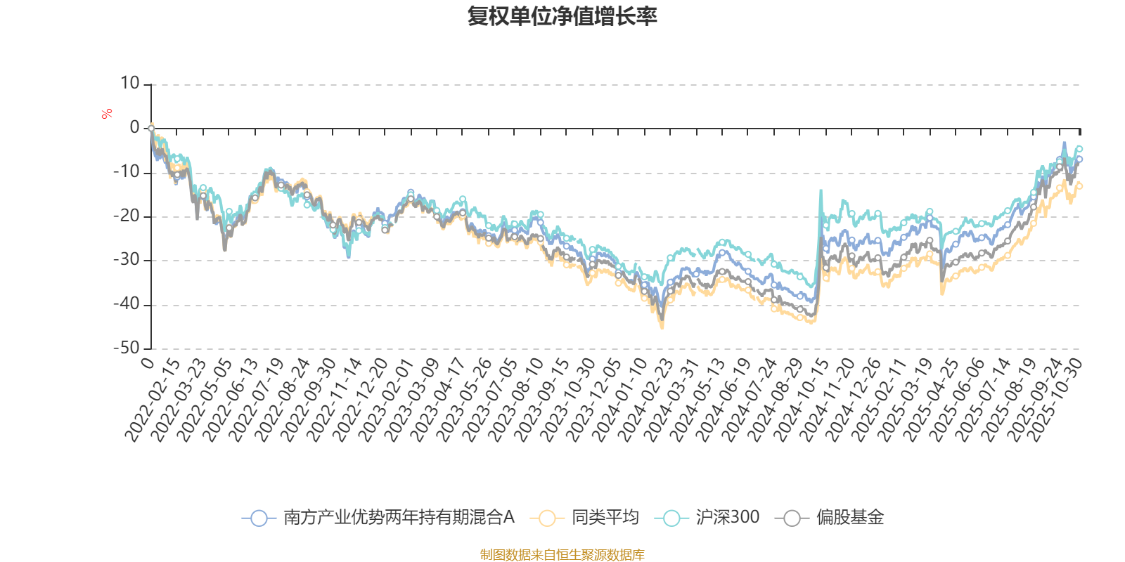 截至10月30日,南方产业优势两年持有期混合A近三个月复权单位净值增长率为12.82%,位于同类可比基金109/185;近半年复权单位净值增长率为25.33%,位于同类可比基金118/185;近一年复权单位净值增长率为25.79%,位于同类可比基金106/181;近三年复权单位净值增长率为31.07%,位于同类可比基金63/175。