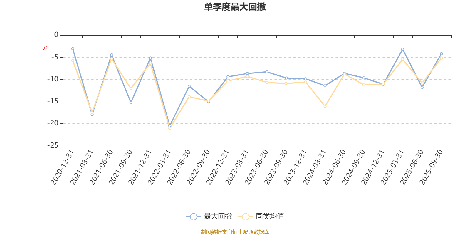 通过所选区间该基金净值增长率分位图,可以观察该基金与同类基金业绩比较情况。图为坐标原点到区间内某时点的净值增长率在同类基金中的分位数。