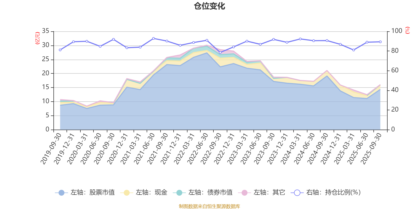 据定期报告数据统计,近三年平均股票仓位为88.45%,同类平均为86.77%。2021年上半年末基金达到92.8%的最高仓位,2022年三季度末最低,为78.52%。