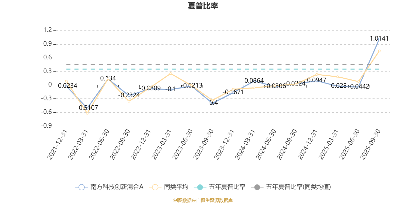截至9月30日,基金近三年夏普比率为0.5013,位于同类可比基金134/159。