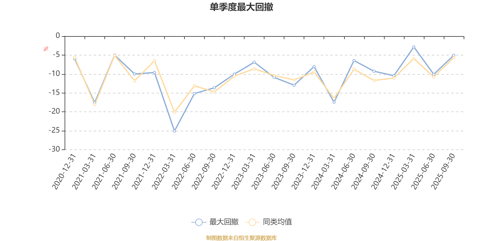 截至10月29日,基金近三年最大回撤为34.94%,同类可比基金排名243/513。单季度最大回撤出现在2022年一季度,为25.09%。
