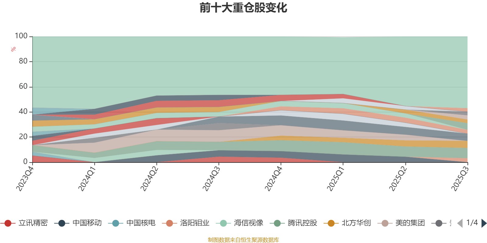 截至2025年三季度末,基金十大重仓股分别是腾讯控股、宁德时代、北方华创、中芯国际、拓荆科技、洛阳钼业、久立特材、贝特瑞、兆易创新、新易盛。