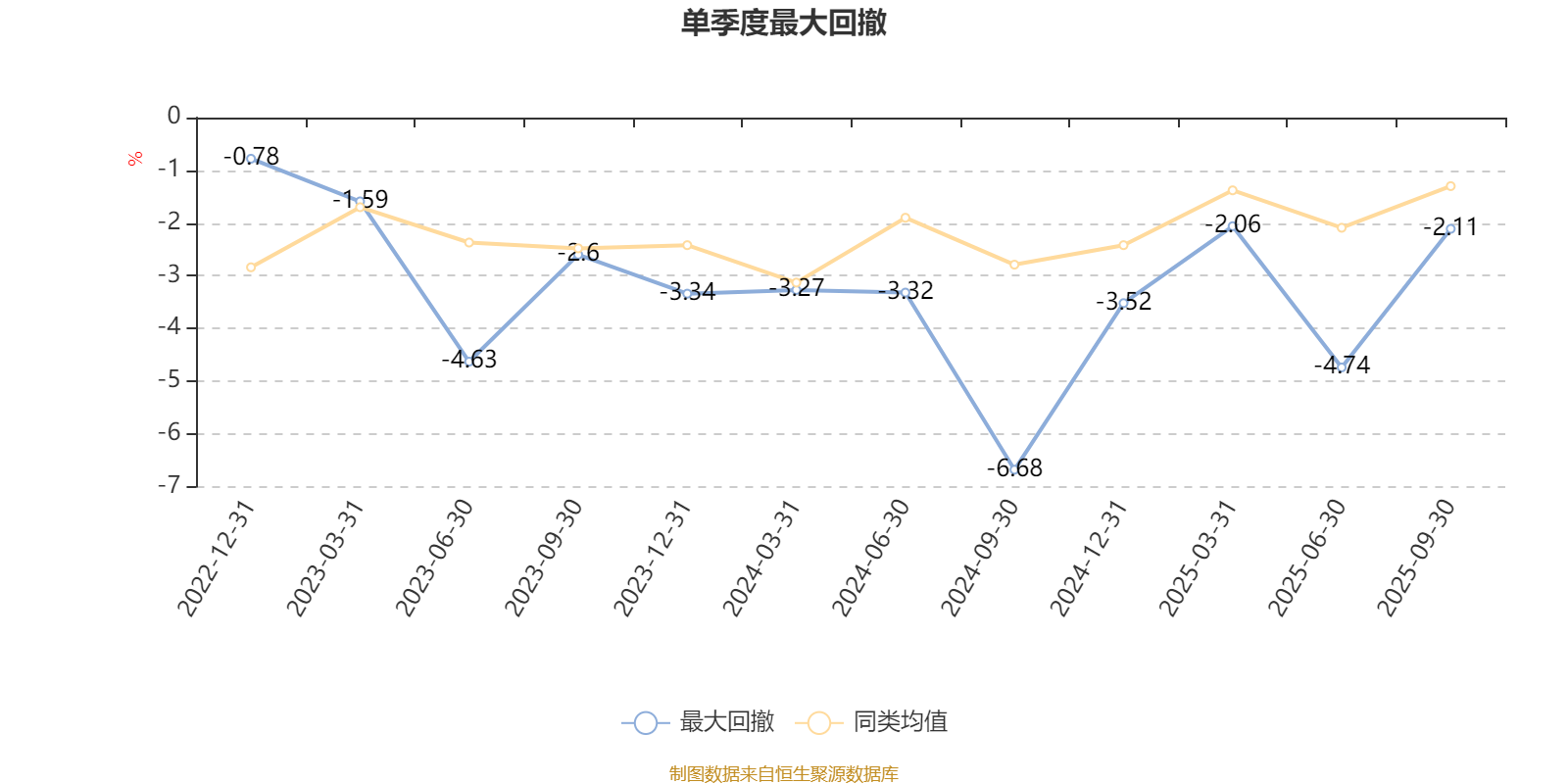 截至10月28日,基金近三年最大回撤为8.52%,同类可比基金排名367/535。单季度最大回撤出现在2024年三季度,为6.68%。