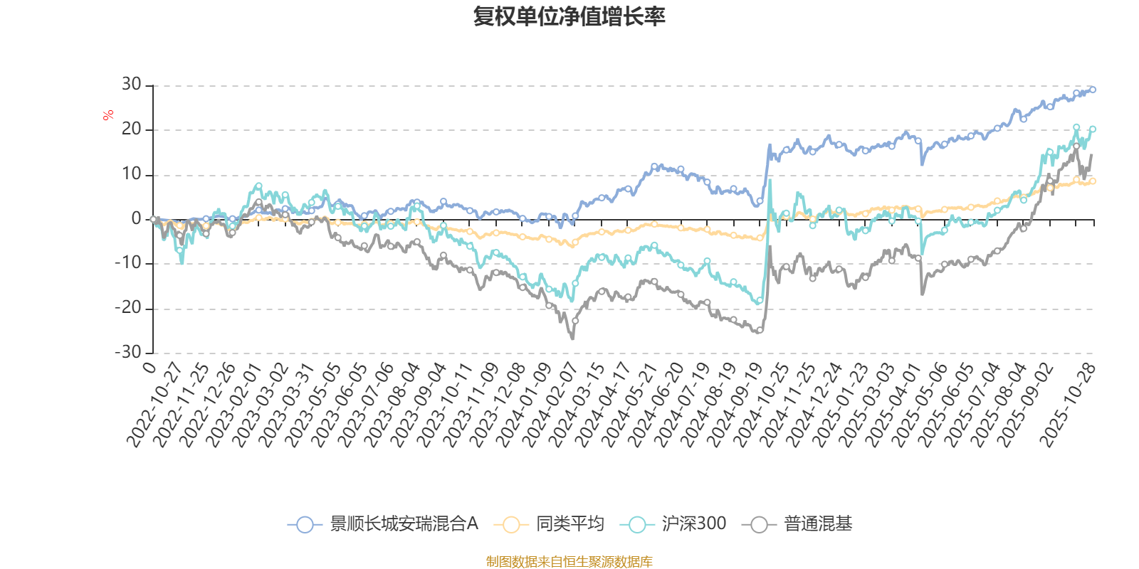 截至10月28日,景顺长城安瑞混合A近三个月复权单位净值增长率为4.08%,位于同类可比基金152/629;近半年复权单位净值增长率为11.14%,位于同类可比基金66/629;近一年复权单位净值增长率为10.94%,位于同类可比基金113/623;近三年复权单位净值增长率为30.18%,位于同类可比基金22/557。