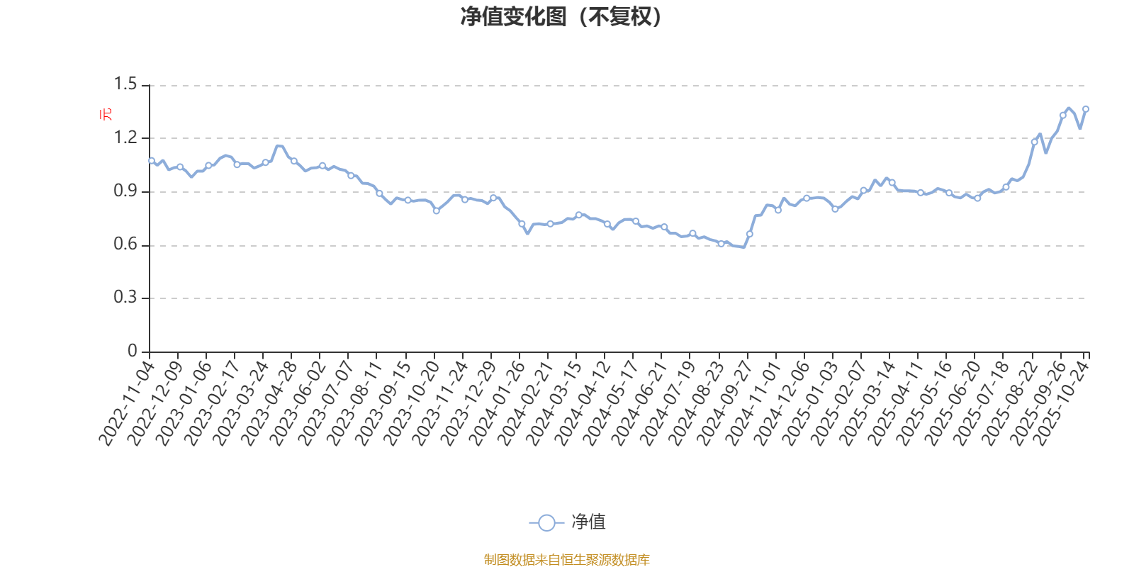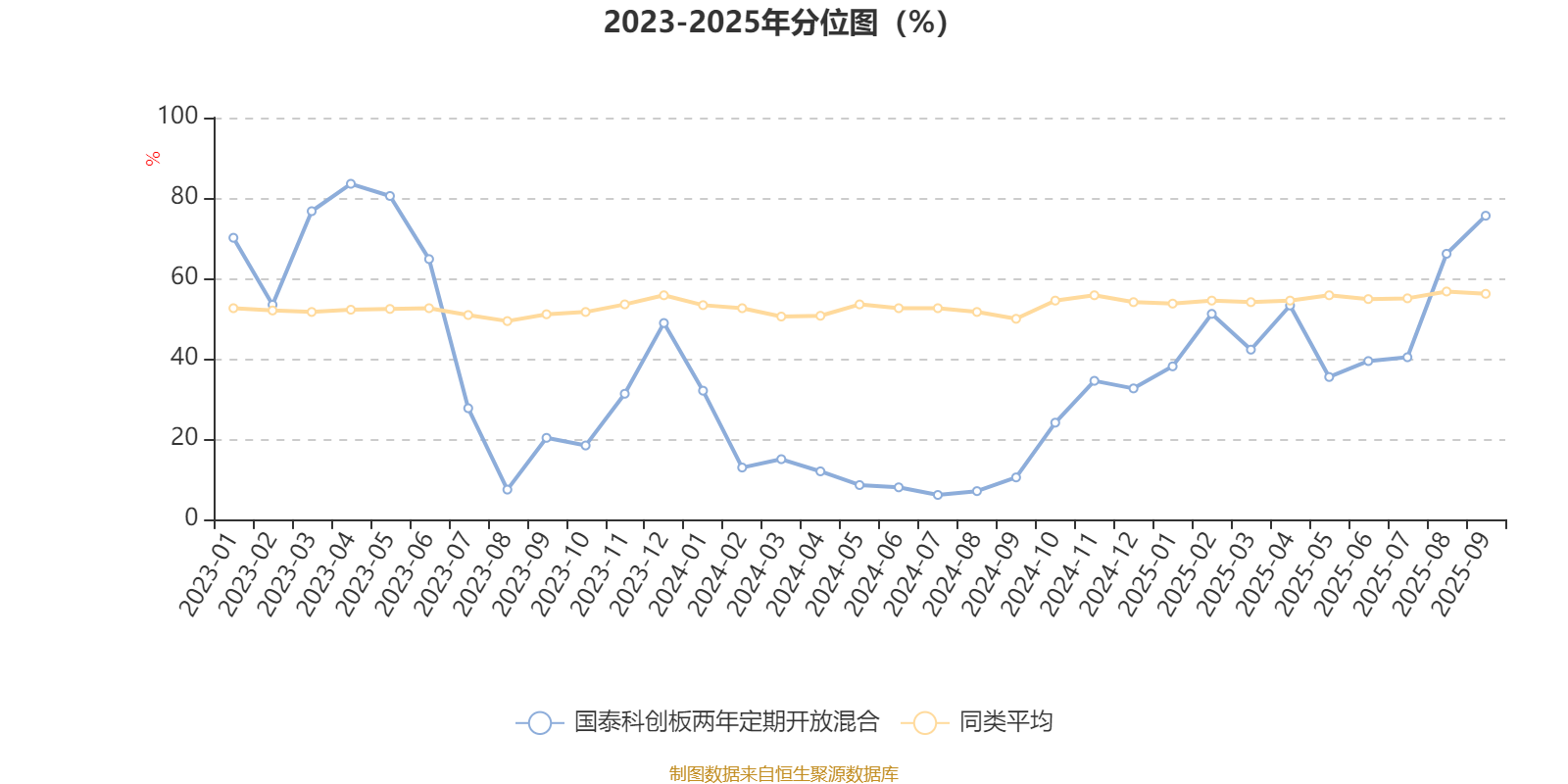 通过所选区间该基金净值增长率分位图,可以观察该基金与同类基金业绩比较情况。图为坐标原点到区间内某时点的净值增长率在同类基金中的分位数。