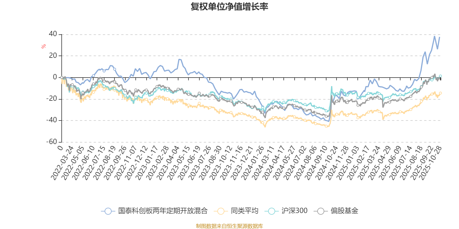 截至10月24日,国泰科创板两年定期开放混合近三个月复权单位净值增长率为47.17%,位于同类可比基金22/621;近半年复权单位净值增长率为53.95%,位于同类可比基金67/619;近一年复权单位净值增长率为65.15%,位于同类可比基金36/611;近三年复权单位净值增长率为33.75%,位于同类可比基金144/518。