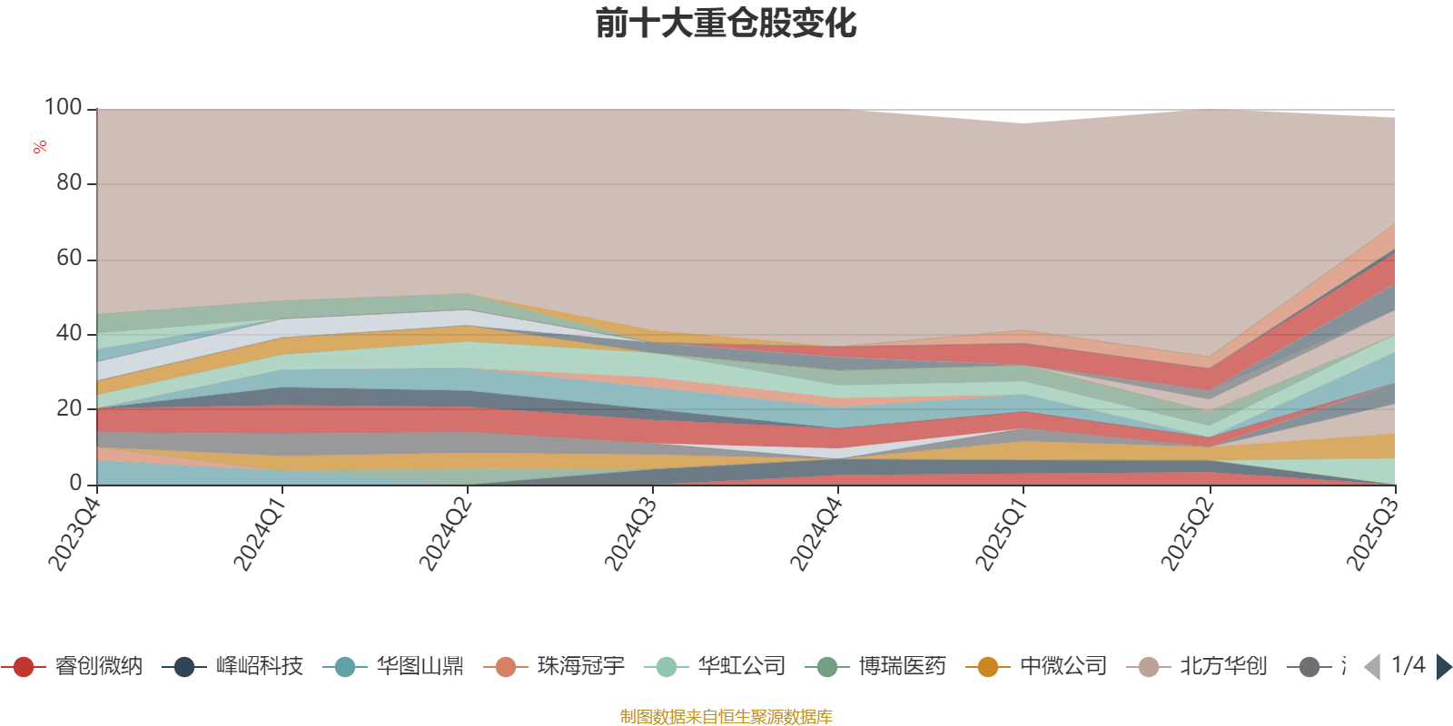 截至2025年三季度末,基金重仓股分别是寒武纪、中芯国际、北方华创、华虹公司、海光信息、拓荆科技、中科飞测、中微公司、芯原股份、澜起科技、华虹半导体。