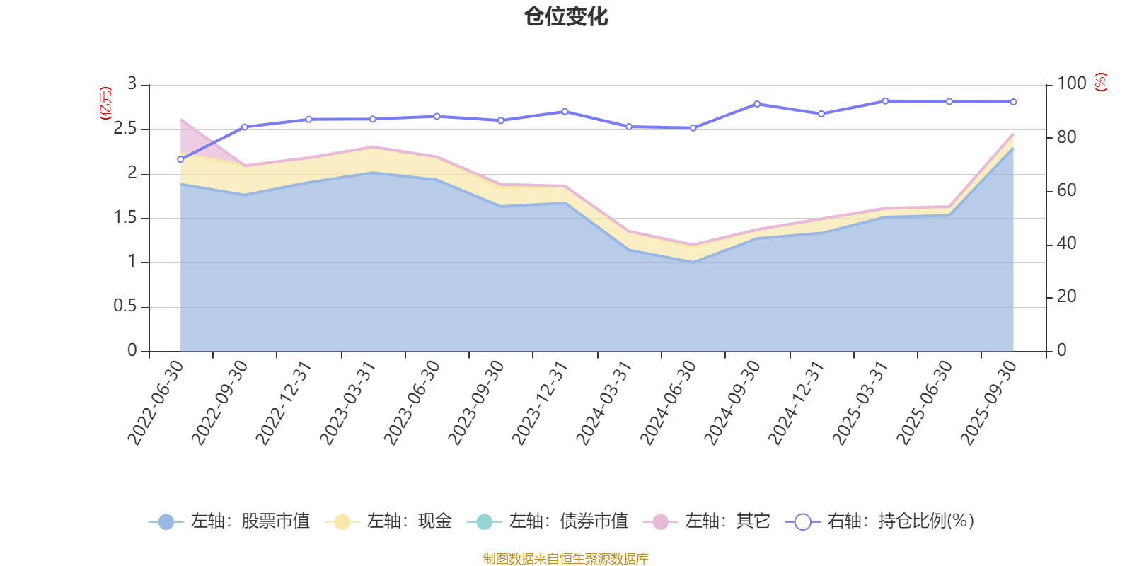 据定期报告数据统计,近三年平均股票仓位为89.21%,同类平均为85.66%。2025年一季度末基金达到93.97%的最高仓位,2022年上半年末最低,为72.06%。