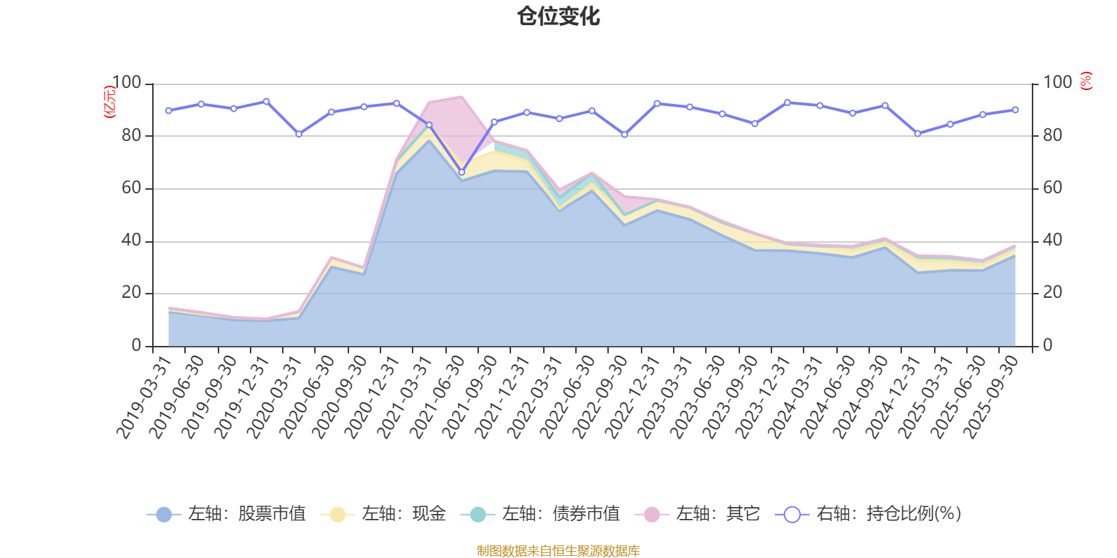 据定期报告数据统计,近三年平均股票仓位为88.81%,同类平均为72.35%。2019年末基金达到93.23%的最高仓位,2021年上半年末最低,为66.31%。