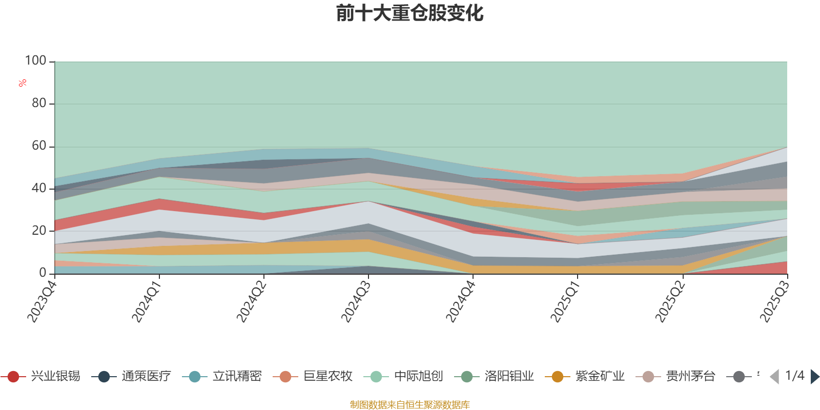 截至2025年三季度末,基金十大重仓股分别是万华化学、三一重工、洛阳钼业、新易盛、三花智控、兴业银锡、工业富联、中际旭创、牧原股份、中国平安。