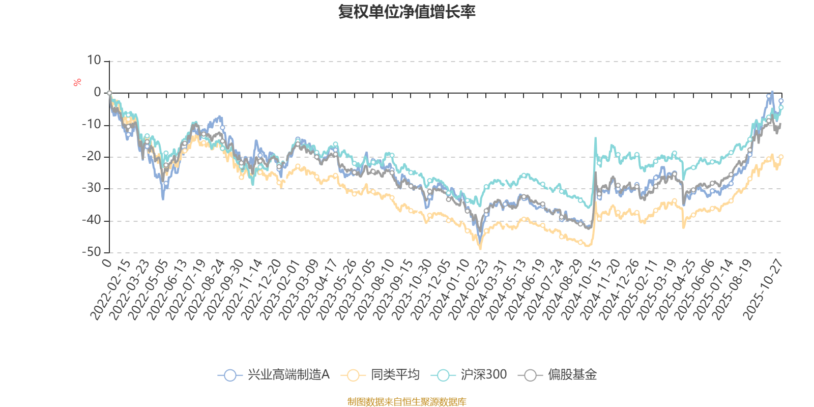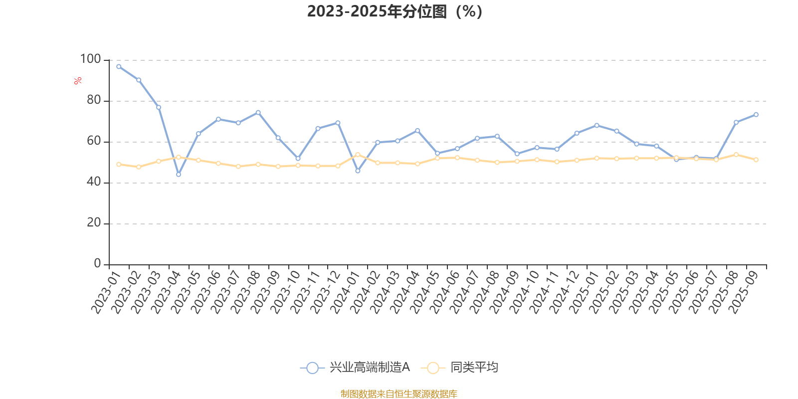 截至10月27日,兴业高端制造A近三个月复权单位净值增长率为30.57%,位于同类可比基金88/689;近半年复权单位净值增长率为41.19%,位于同类可比基金144/688;近一年复权单位净值增长率为40.74%,位于同类可比基金153/653;近三年复权单位净值增长率为22.81%,位于同类可比基金132/364。