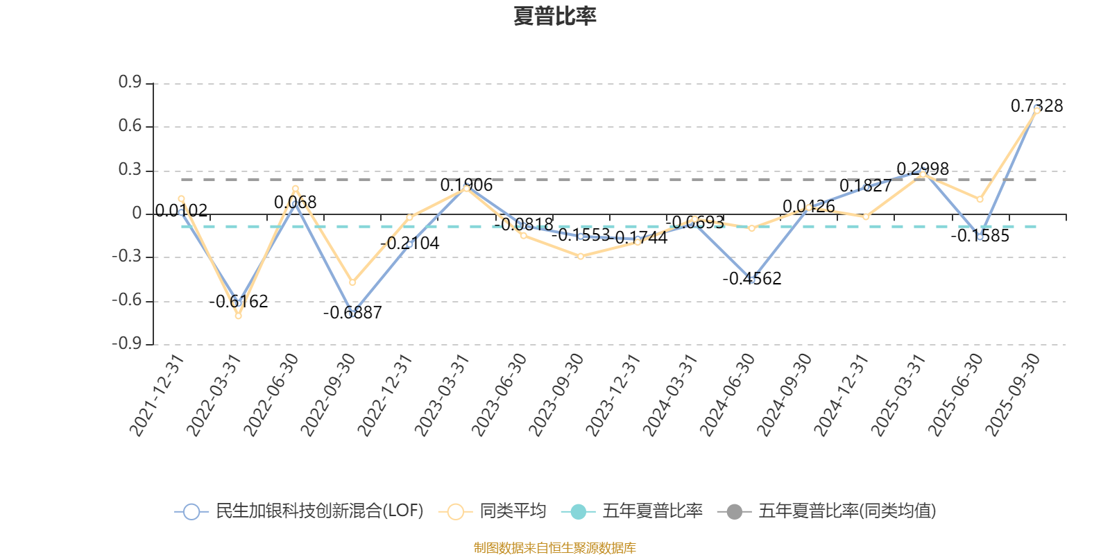截至9月30日,基金近三年夏普比率为0.4663,位于同类可比基金297/518。