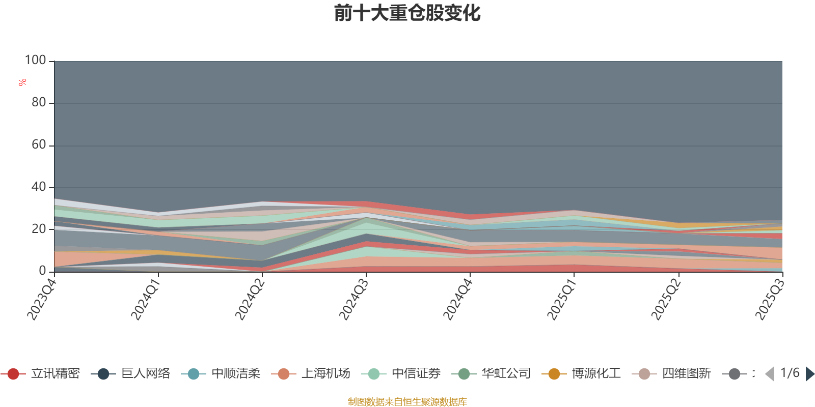 截至2025年三季度末,基金十大重仓股分别是百润股份、金山办公、心脉医疗、上海机场、芒果超媒、中顺洁柔、广深铁路、博源化工、乐普医疗、安琪酵母。