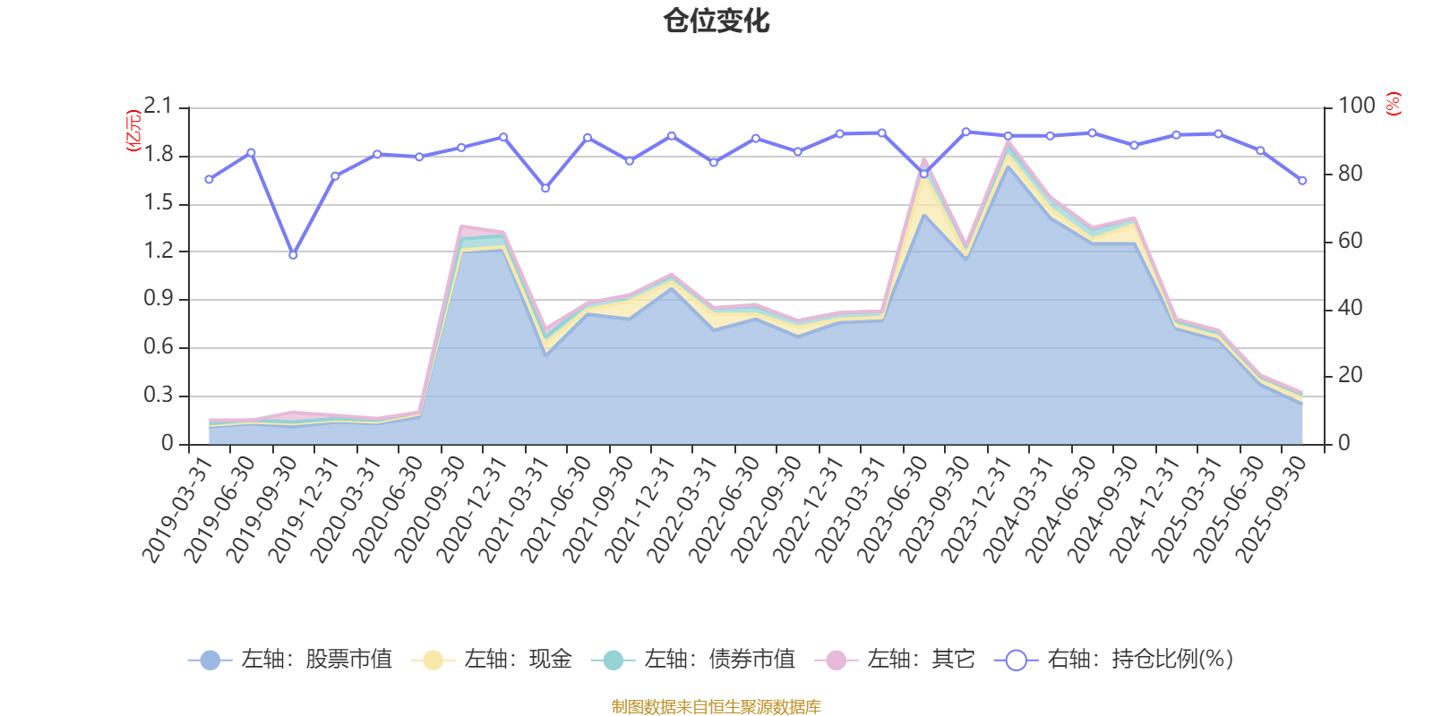 据定期报告数据统计,近三年平均股票仓位为89.28%,同类平均为72.35%。2023年三季度末基金达到92.77%的最高仓位,2019年三季度末最低,为56.18%。