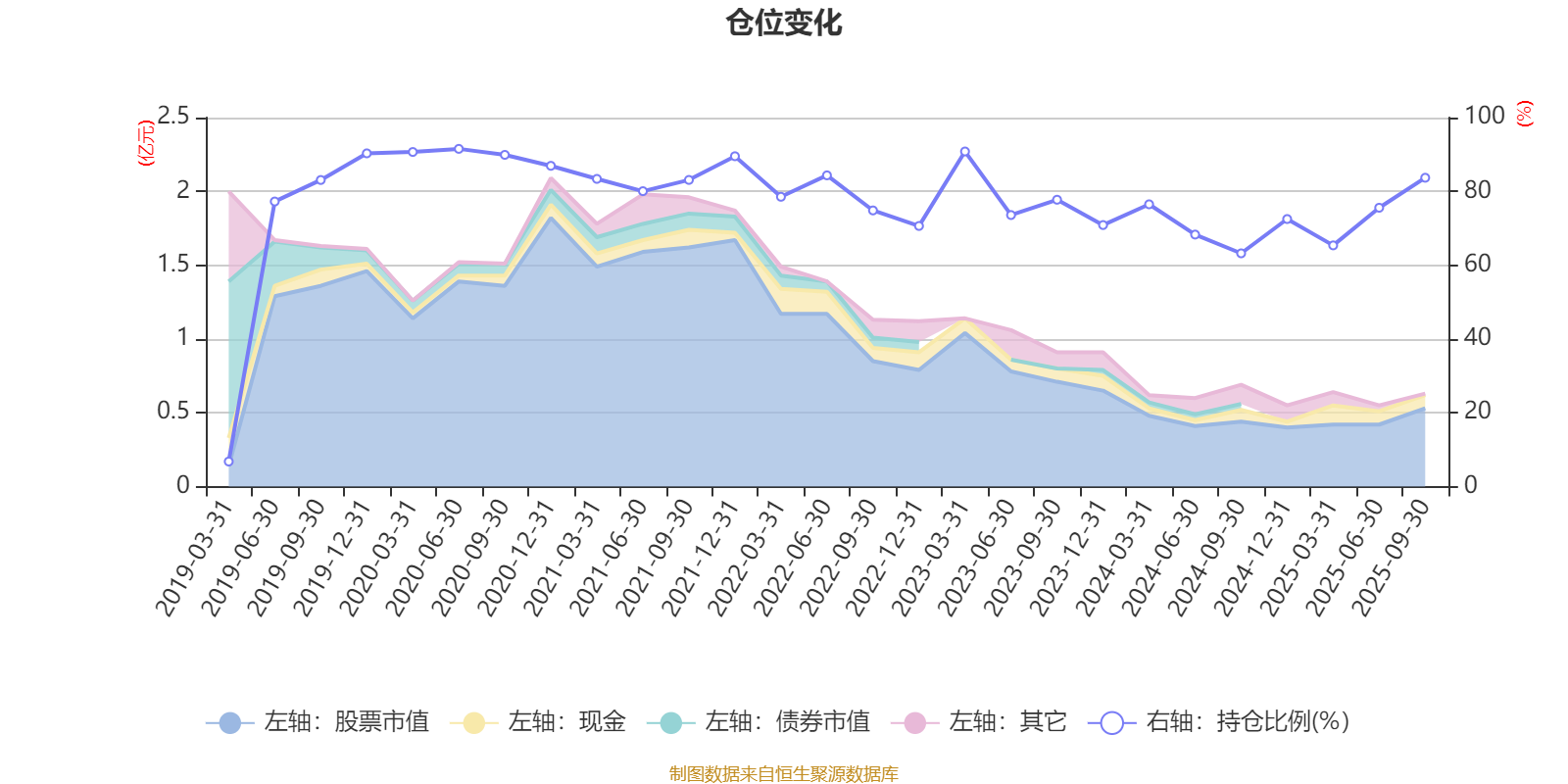据定期报告数据统计,近三年平均股票仓位为74.07%,同类平均为72.35%。2020年上半年末基金达到91.53%的最高仓位,2019年一季度末最低,为6.79%。