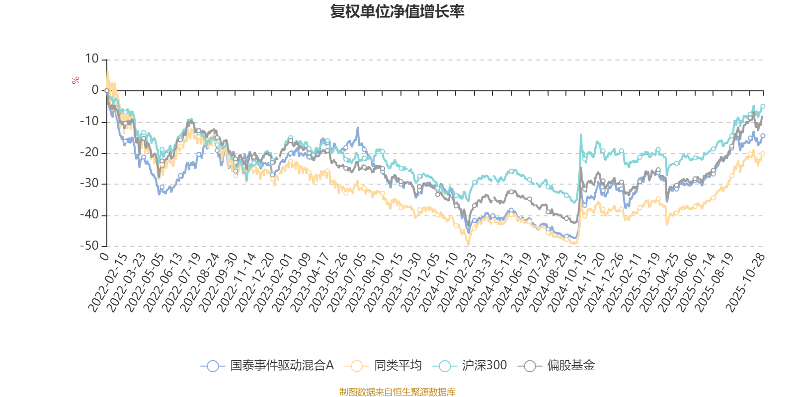 截至10月28日,国泰事件驱动混合A近三个月复权单位净值增长率为10.35%,位于同类可比基金411/621;近半年复权单位净值增长率为25.71%,位于同类可比基金369/619;近一年复权单位净值增长率为28.98%,位于同类可比基金290/611;近三年复权单位净值增长率为11.21%,位于同类可比基金313/518。