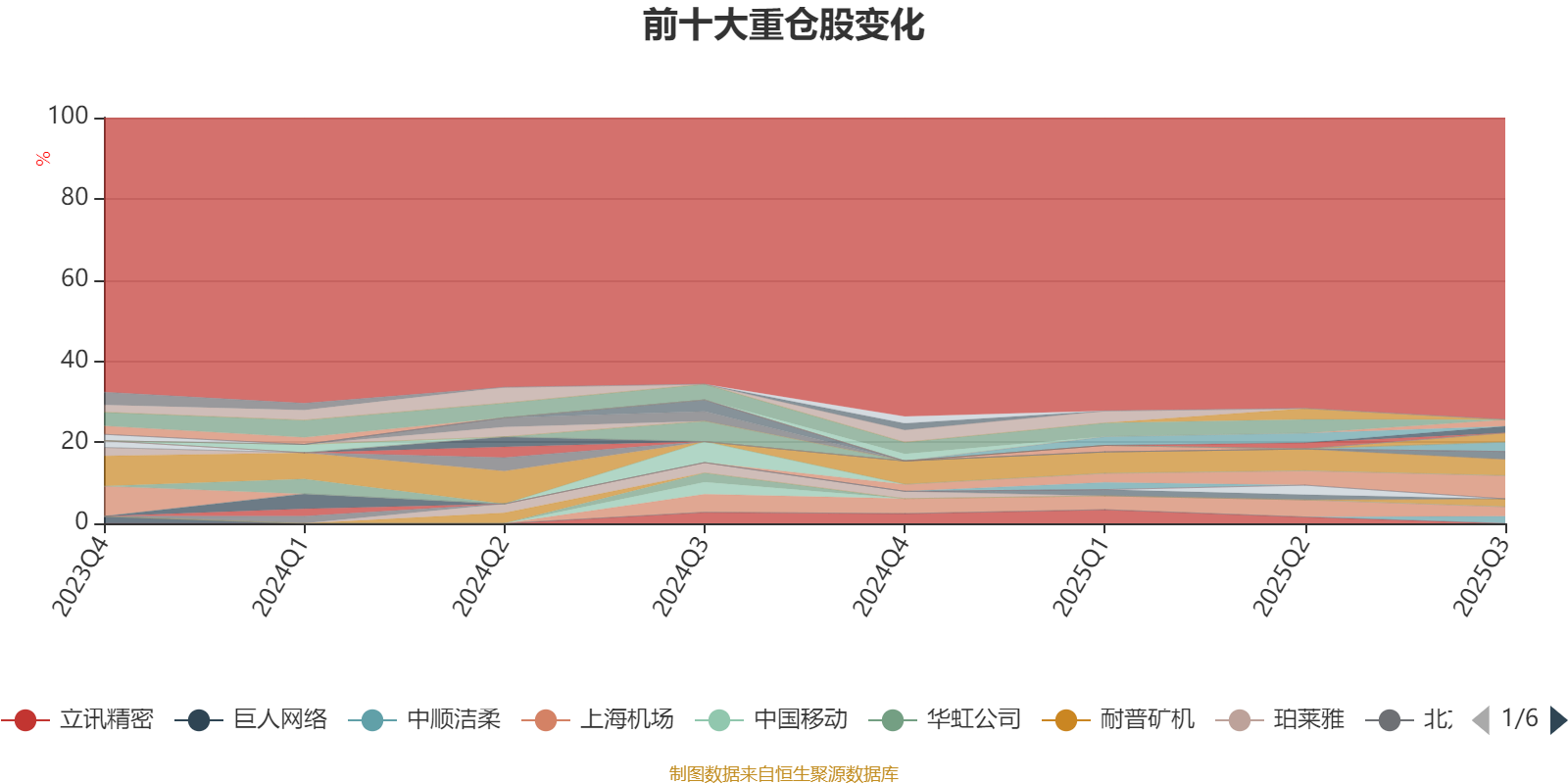 截至2025年三季度末,基金十大重仓股分别是百润股份、金山办公、上海机场、心脉医疗、乐普医疗、耐普矿机、兄弟科技、中顺洁柔、国能日新、歌尔股份。