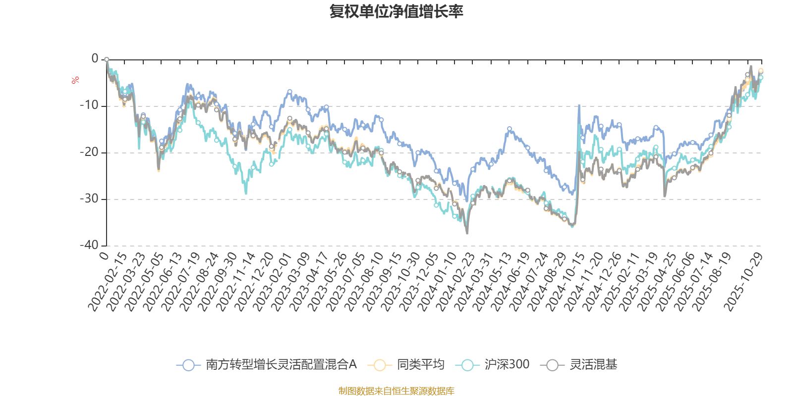 截至10月29日,南方转型增长灵活配置混合A近三个月复权单位净值增长率为12.09%,位于同类可比基金652/1287;近半年复权单位净值增长率为22.38%,位于同类可比基金717/1287;近一年复权单位净值增长率为14.54%,位于同类可比基金859/1287;近三年复权单位净值增长率为20.67%,位于同类可比基金567/1286。