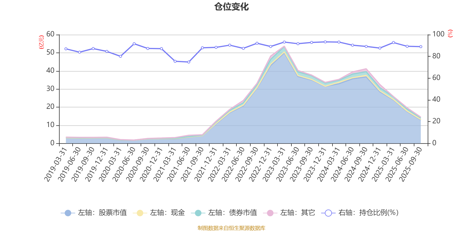据定期报告数据统计,近三年平均股票仓位为90.95%,同类平均为72.35%。2023年末基金达到93.33%的最高仓位,2021年上半年末最低,为74.81%。